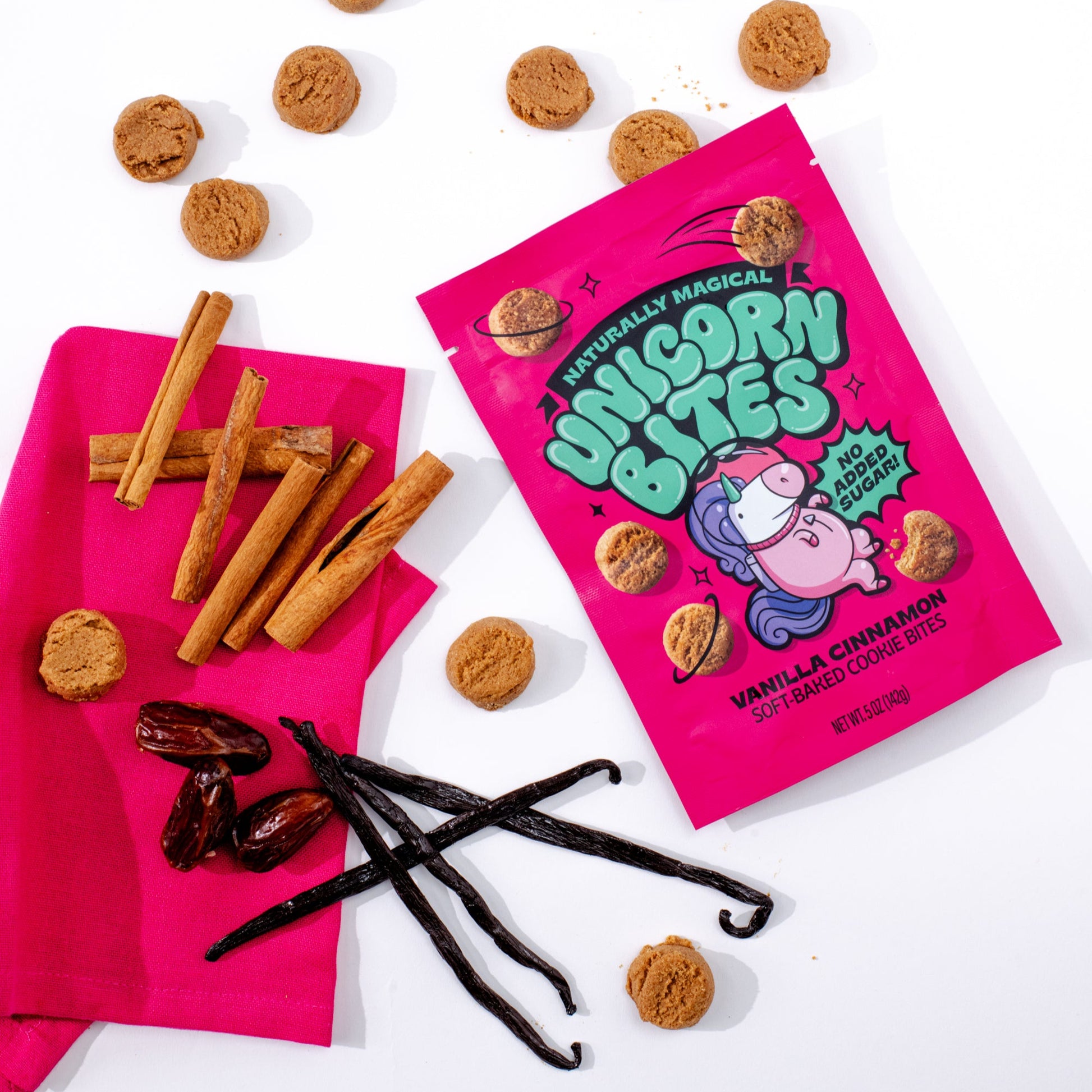 Get a bite of magic in each of our Snickerdoodle Unicorn Bites. The perfect balance of vanilla and cinnamon to bring you a powerhouse snack with some serious comfort. We believe that natural is magical, which is why our soft-baked cookies are made with sugar from real dates, offering a delicious, natural sweetness with zero artificial or refined sugars. Experience the magic of a healthier cookie that doesn't compromise on taste!